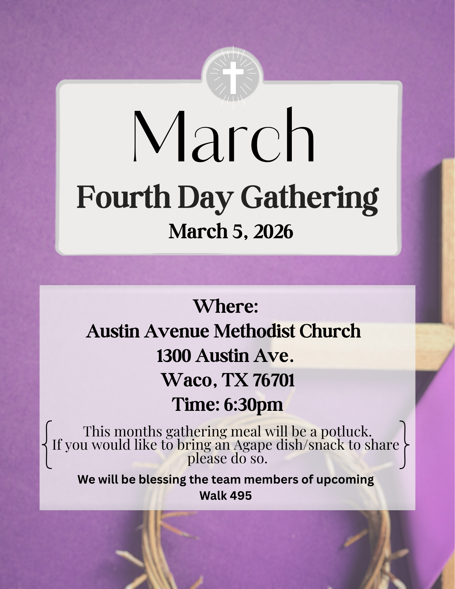 Come enjoy the food, fun, and fellowship in our Lord’s name the first Thursday of each month. Please come at 6:30 p.m. for a covered dish supper or join us at 6:30pm for pot luck meal and 7:00p.m. for Gathering and Holy Communion.